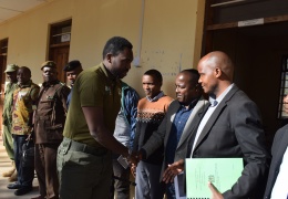 Mkurugenzi Mtendaji wa Halmashauri ya wilaya ya Mpanda akisalimiana na waziri wa Maliasili na utalii Mhe. Dkt. Hamisi Kigwangala. Dkt. Kigwangala amefanya ziara ya kikazi katika Halmashauri ya wilaya ...