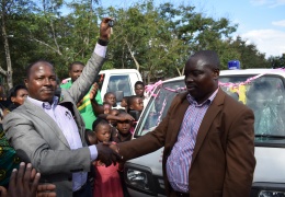 Mkurugenzi Mtendaji wa Halmashauri ya wilaya ya Mpanda, Romuli Rojas John ( wa kwanza kutoka kushoto) amekabidhiwa funguo za magari mawili kutoka kwa Mbunge wa Mpanda vijijini mhe. Moshi Kakoso. Magar...
